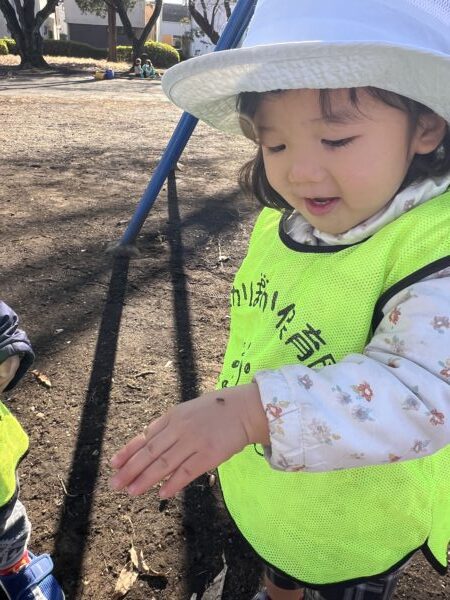 今度は虫を発見!こんなに寒いのにいるんだね。葉っぱに隠れていたんだね。