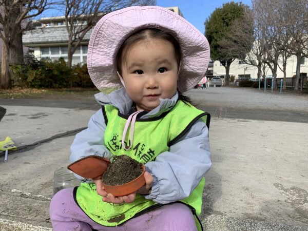 また、砂場では、小さな指で砂をぎゅっと握りしめて、そのサラサラ、ザラザラとした感触をじっくりと味わっていました。