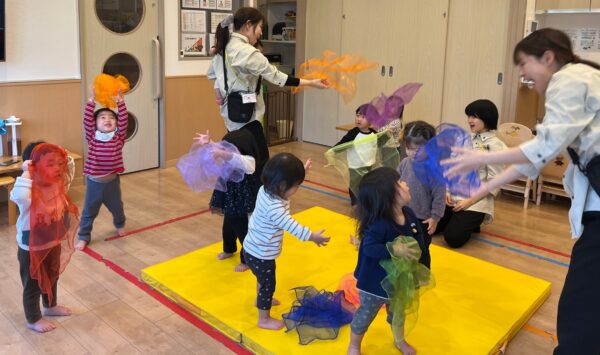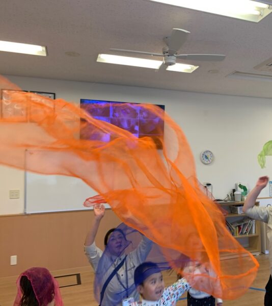 最後は空高く、それーっと投げます。視覚的にも音のフレーズを感じて動くことが出来ました♪